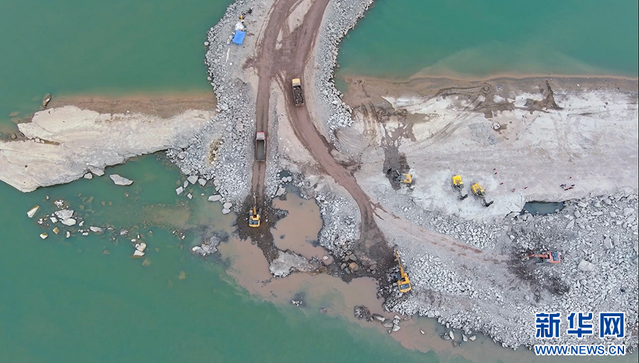 施工人员抢抓低水位期进行清礁整治作业。新华网发(夏雷 摄)