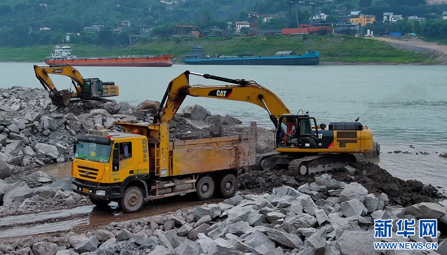 近日,施工人员在重庆涪陵长江上游航道大梁水域碍航点加快清礁整治作业,力争9月中旬实现陆上部分整治完成。