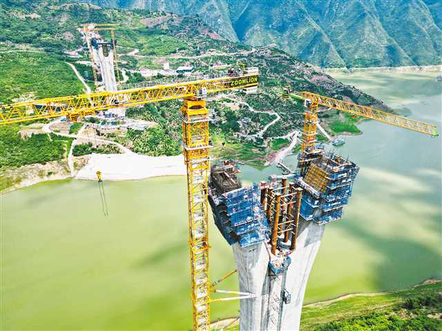该桥全长1662米,主跨跨度650米。自2021年5月开工以来,现已完成下塔柱施工,进入到下横梁施工阶段。(通讯员 王忠虎 余雨芳 摄/视觉重庆)
