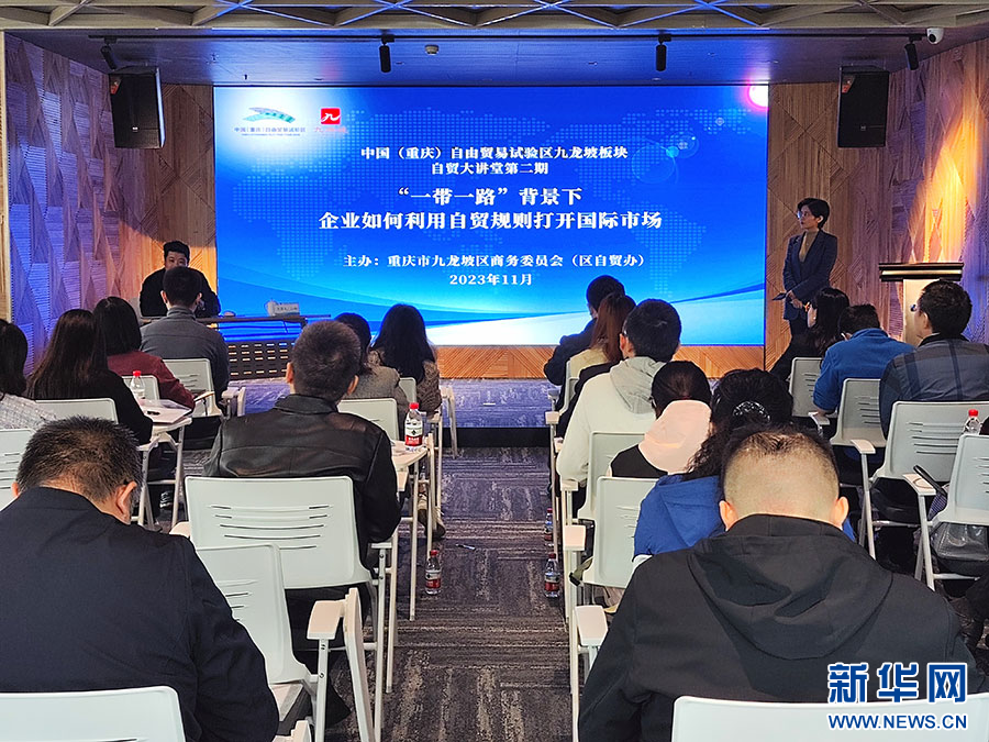 重庆自贸试验区九龙坡板块自贸大讲堂(第二期)现场。新华网发