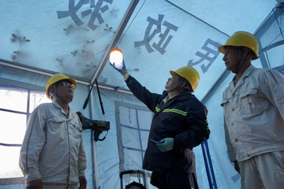 6月28日,国网重庆丰都供电公司员工来到兴义镇,为抗灾救援点提供电力保障。(刘远平 摄)