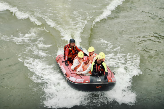 6月25日,国网重庆石柱供电公司联合重庆市消防救援队联合开展迎峰度夏防汛抗洪抢险演练。(王紫晗 摄)