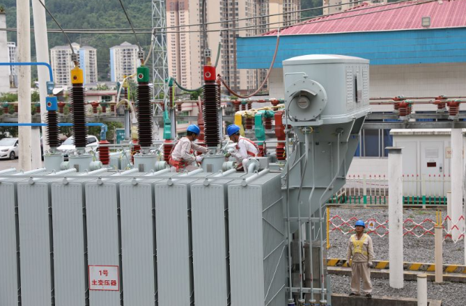 6月25日,国网重庆酉阳供电公司工作人员正在对110千伏城南变电站开展1号主变投运前期消缺相关工作,为迎峰度夏做准备。(庞涛丹 摄)