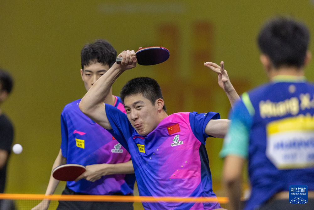 ↑覃予萱/王晓楠(左)在女双比赛中。新华社记者 张子彧 摄