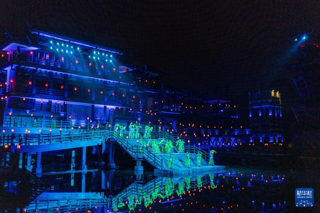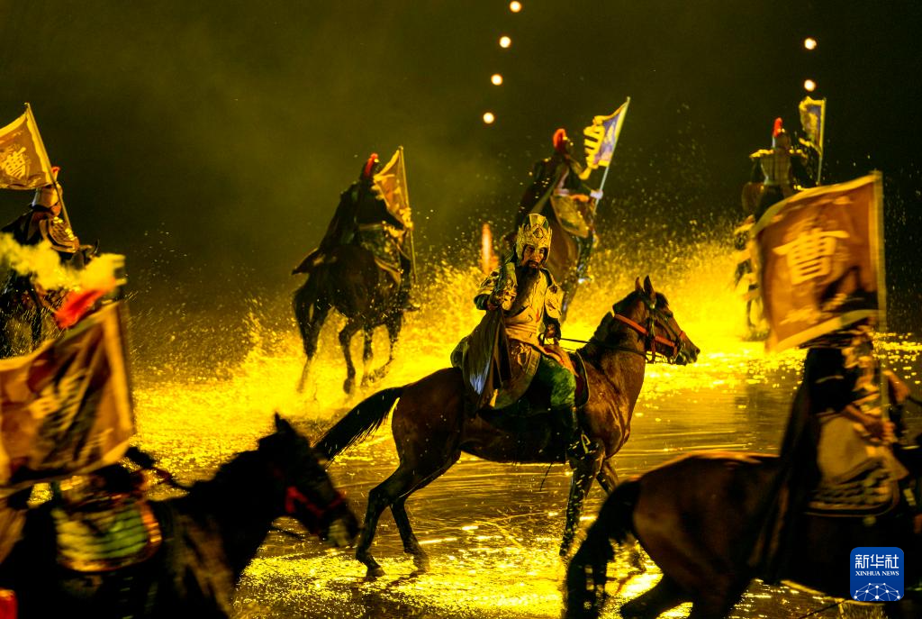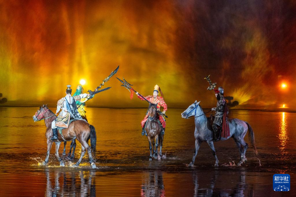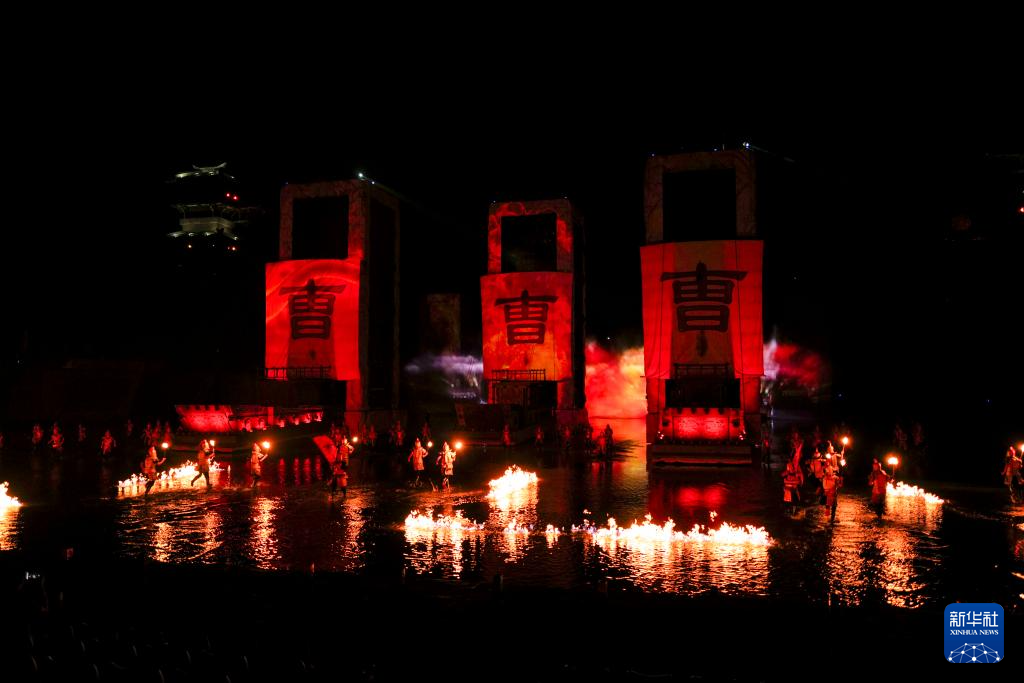 这是7月10日在重庆市忠县拍摄的大型山水实景演艺剧《烽烟三国》演出现场。新华社记者 黄伟 摄