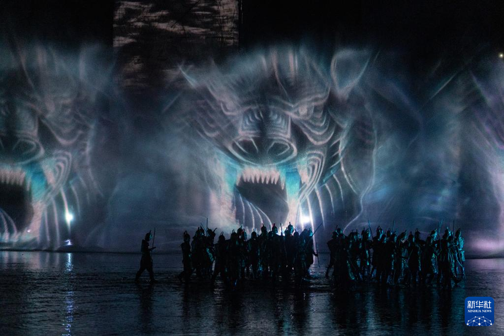 这是7月10日在重庆市忠县拍摄的大型山水实景演艺剧《烽烟三国》演出现场。新华社记者 刘潺 摄