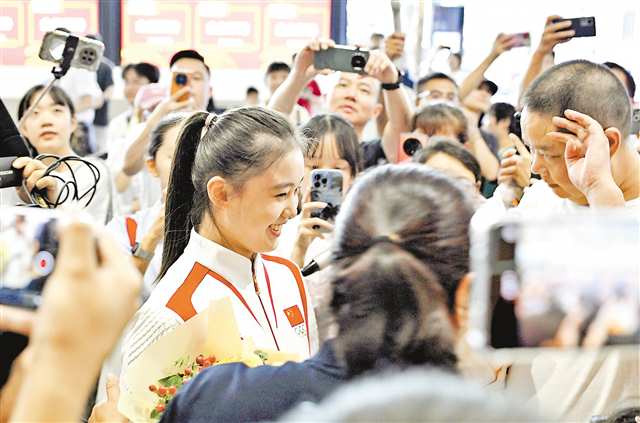 “欣怡,欢迎回家!”8月15日中午,在巴黎奥运会上摘得金牌的丁欣怡,返回家乡重庆。当她走出接机口的那一刻,所有的辛劳和付出都化作教练脸上洋溢的笑容和家人眼中欣慰的泪光。