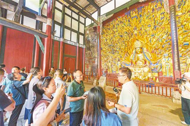 9月27日,记者们走进大足石刻景区采访。记者 李雨恒 摄/视觉重庆