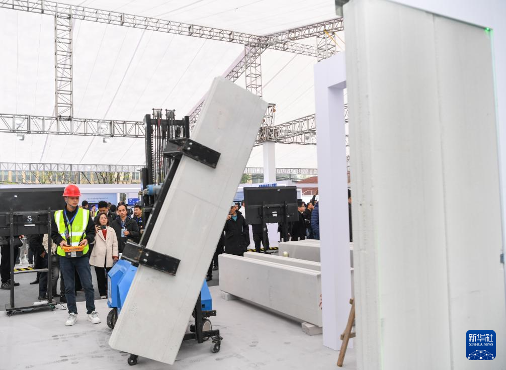 这是12月3日在第二届“中国建造·慧享未来”建筑机器人大赛上拍摄的墙板安装机器人竞赛现场。新华社记者 王全超 摄