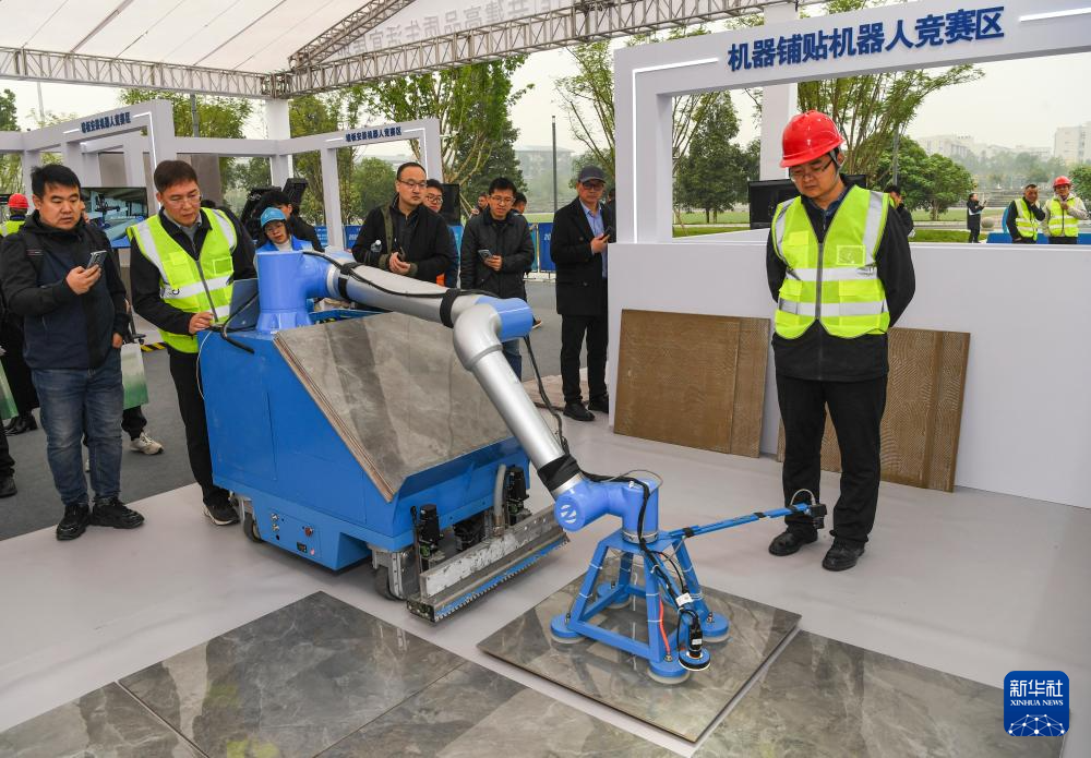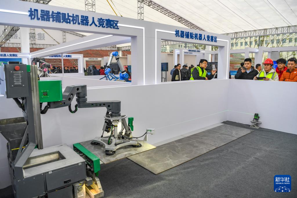 这是12月3日在第二届“中国建造·慧享未来”建筑机器人大赛上拍摄的机器铺贴机器人竞赛现场。新华社记者 王全超 摄