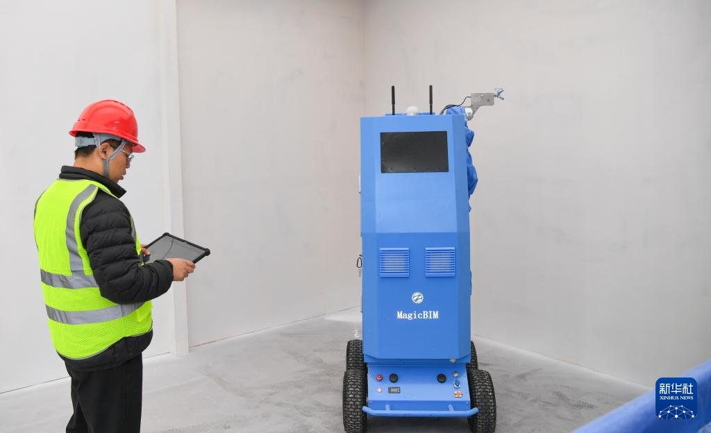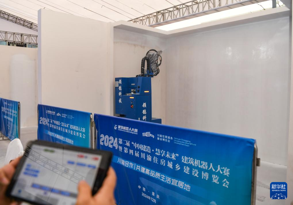 这是12月3日在第二届“中国建造·慧享未来”建筑机器人大赛上拍摄的内墙喷涂机器人竞赛现场。新华社记者 王全超 摄