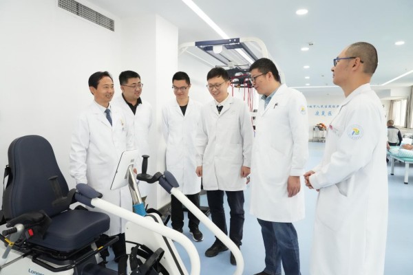 张书广(图左一)带队巡查康复科。(夏冰 摄)