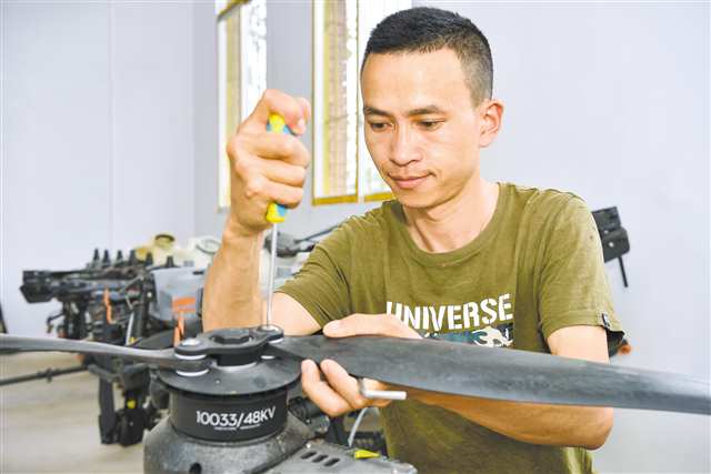 杜小兵在维修无人机。(受访者供图)
