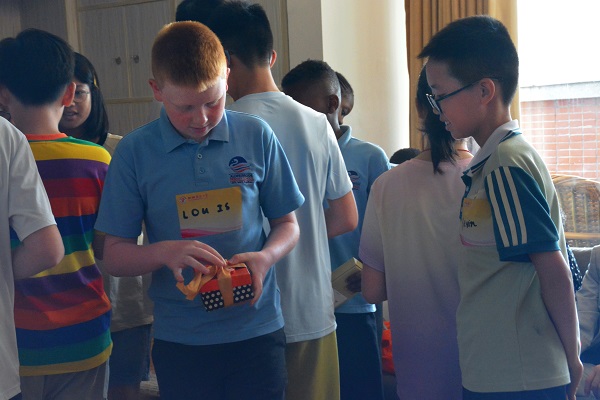 中英学生互相交换礼物。