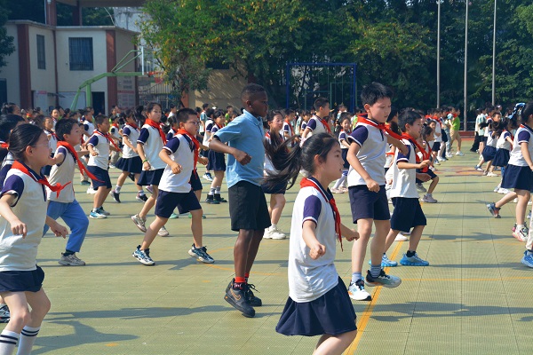 英国学生体验珊瑚康恒小学大课间活动。