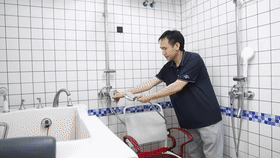 在天津市,南营门街社区养老助浴中心为行动不便的老人提供温暖舒适的洗浴服务。