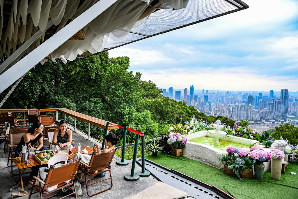 8月23日,游客在重庆南山一家餐厅休闲、聊天。