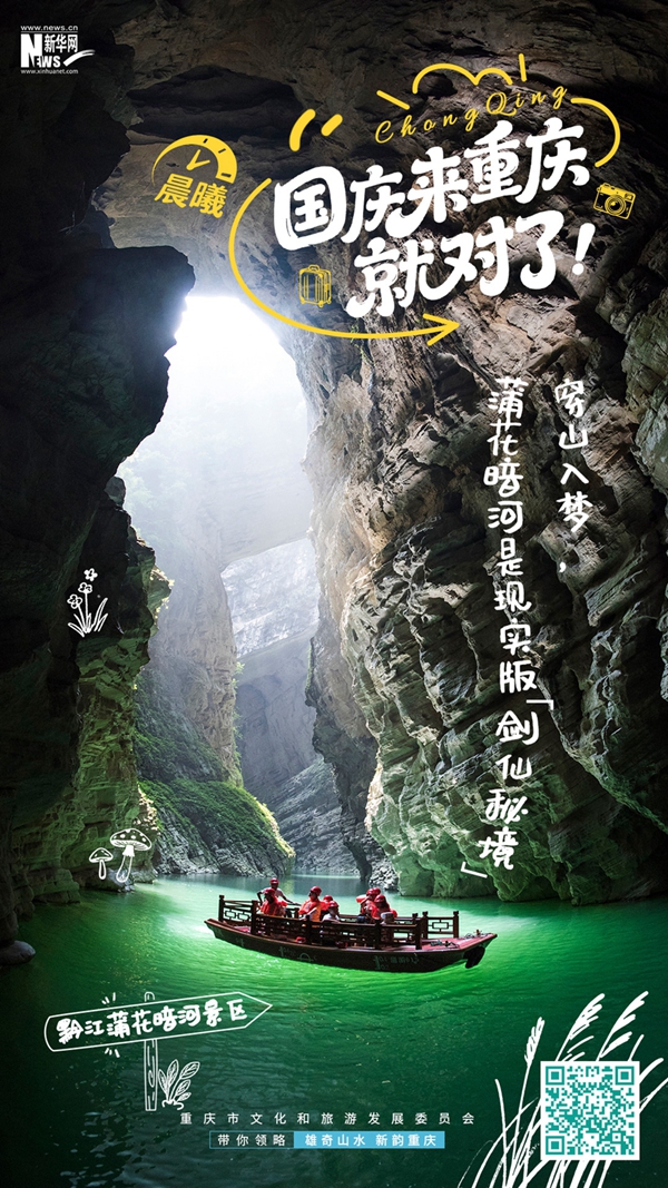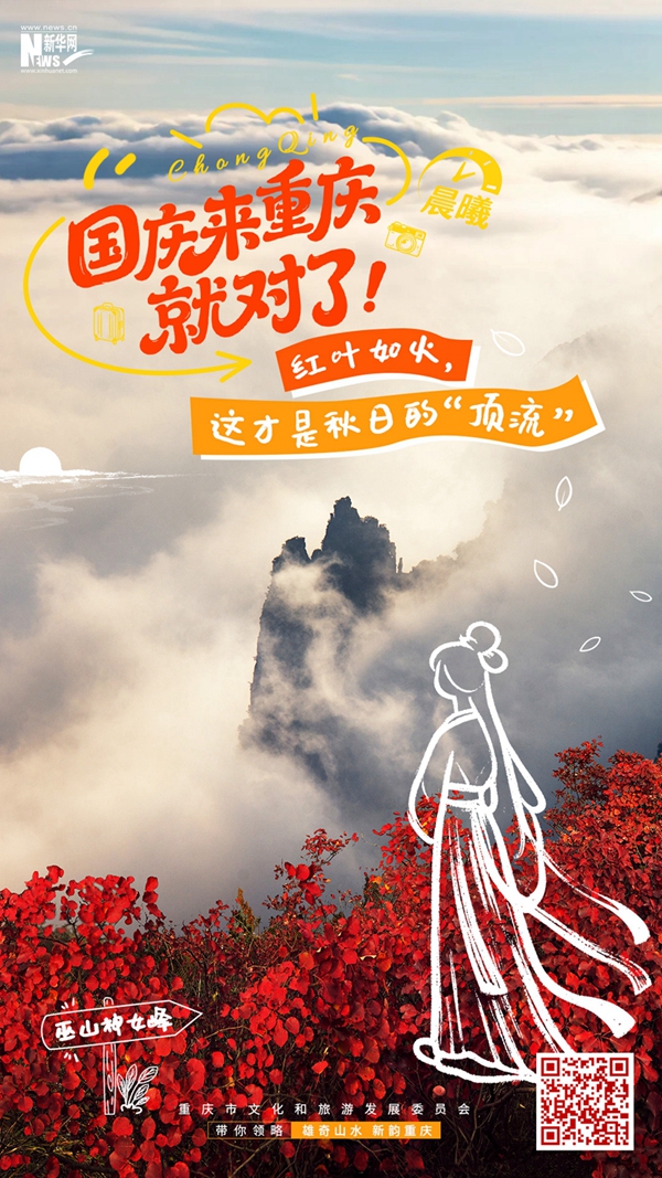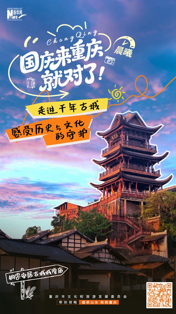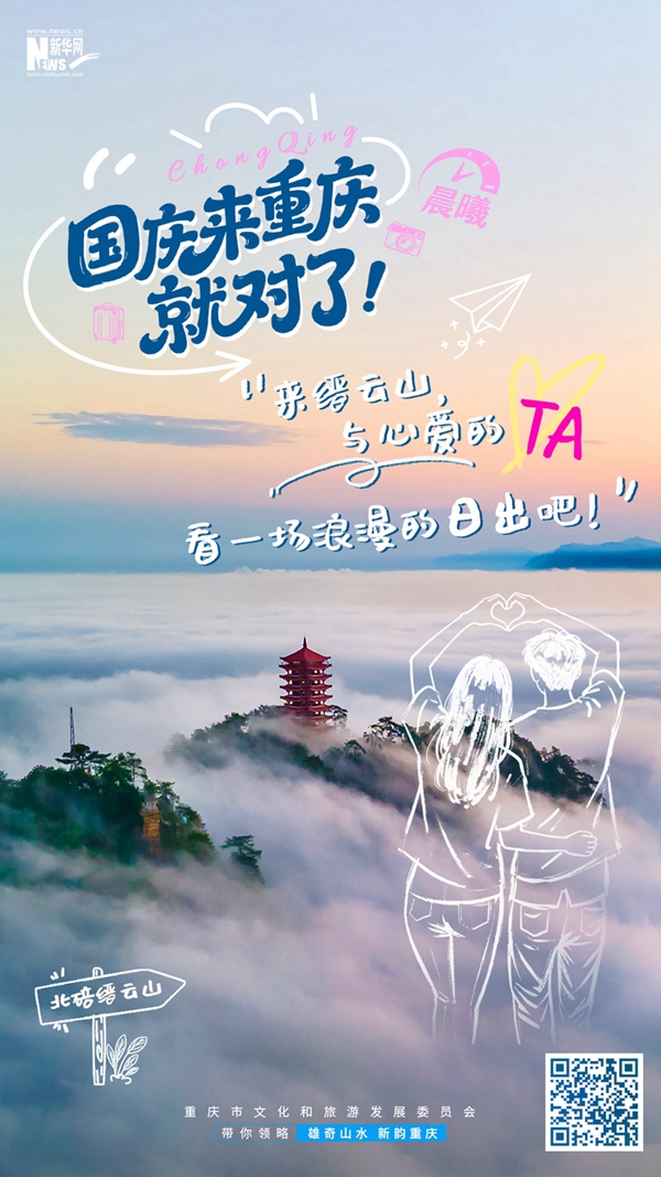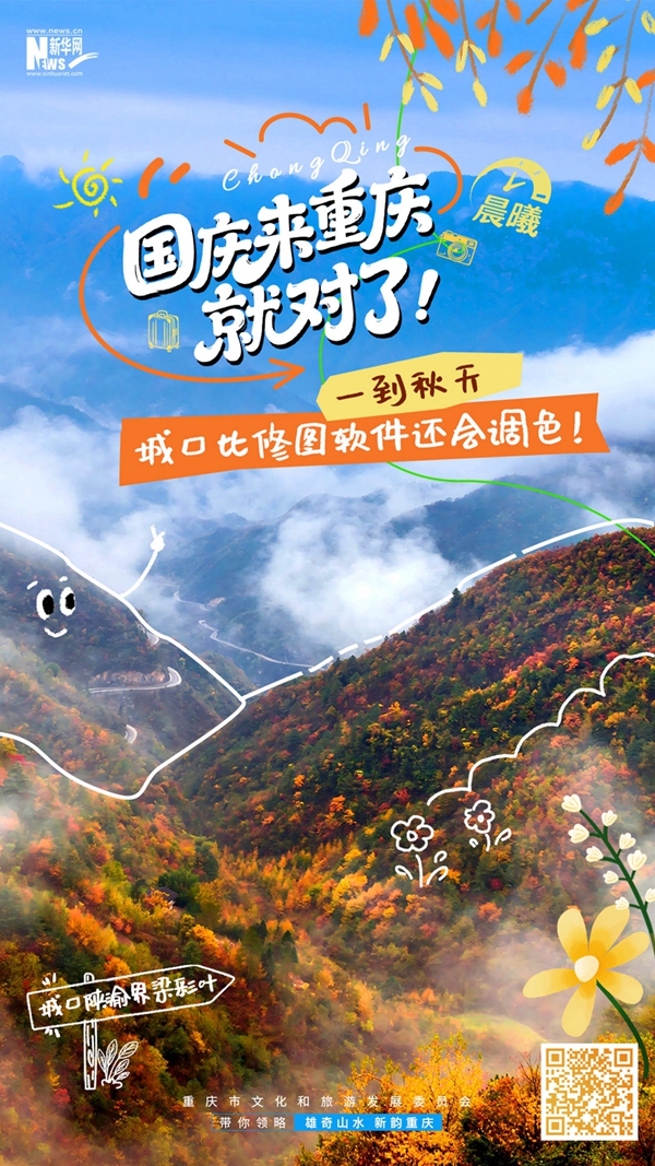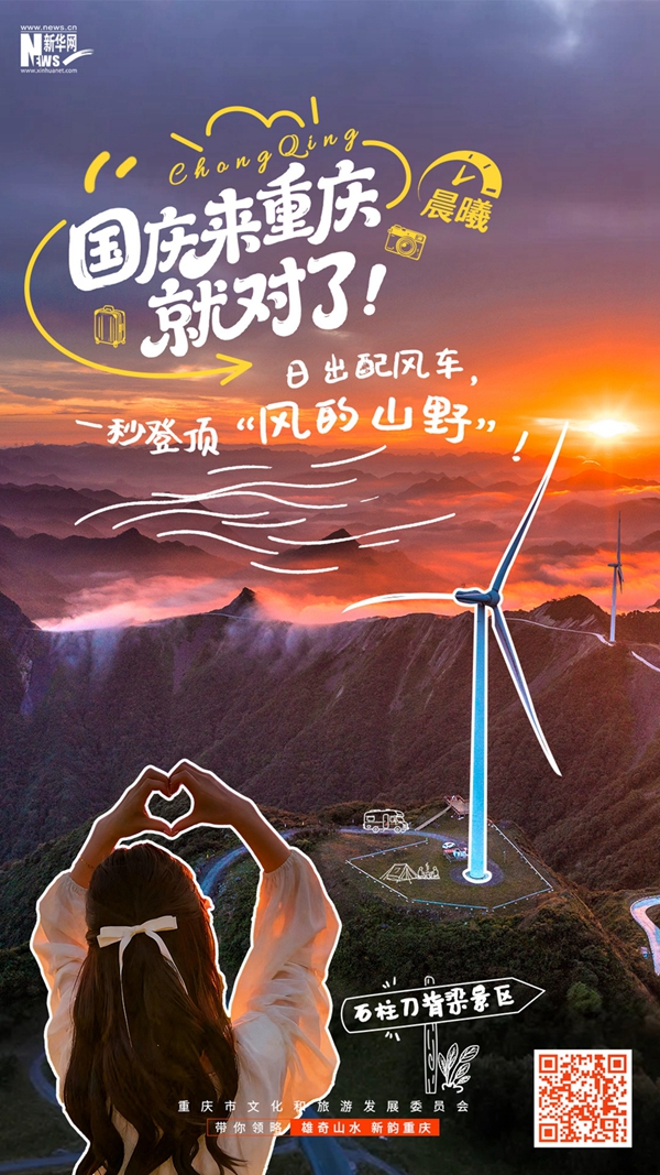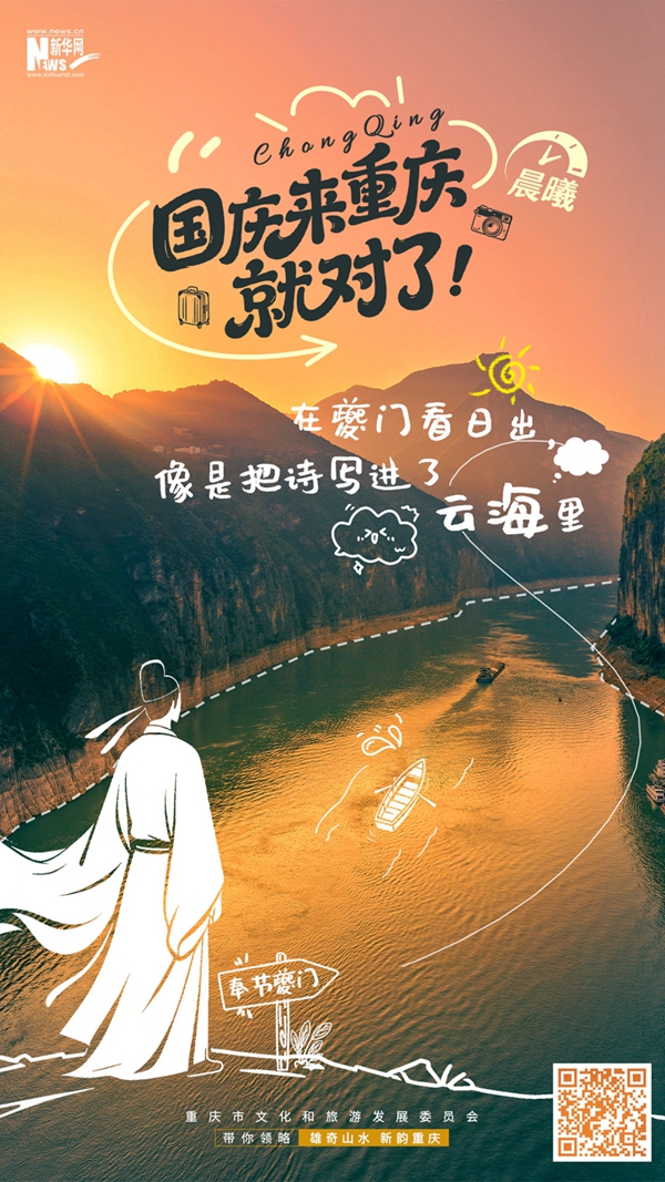 编者按:重庆,这座依山伴水的城市,千年风华与现代魅力交相辉映。每一时段的变换都为这里注入不同的气息与生命。从晨曦的初露,到夜色的璀璨,山水的雄奇与城市的新韵在每一个时辰悄然交融。在中秋国庆节来临之前,现新华网联合重庆市文化和旅游发展委员会推出系列创意海报《国庆来重庆就对了》,展现重庆在“晨曦、白昼、黄昏、夜色”不同时辰的独特魅力。