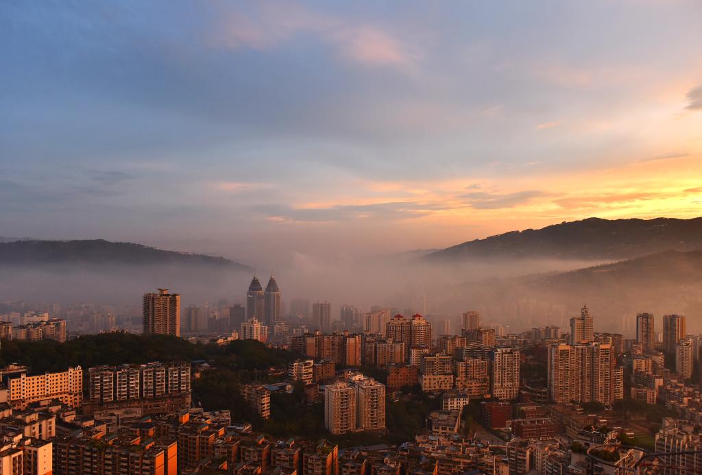 霞光与城市交相辉映,不仅展现了涪陵独特的自然魅力,更成为一幅城市与自然美美与共的生动画面。据悉,涪陵近年来持续推进生态环境治理,绝美风光正逐渐成为当地的“新名片”。新华网发(黄河 摄)