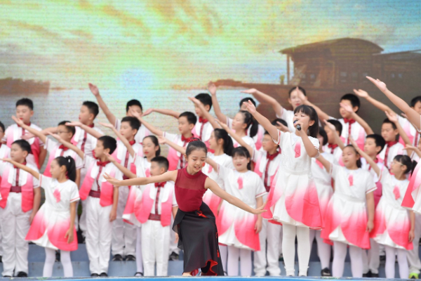 舞台上,学生们放歌礼赞祖国。