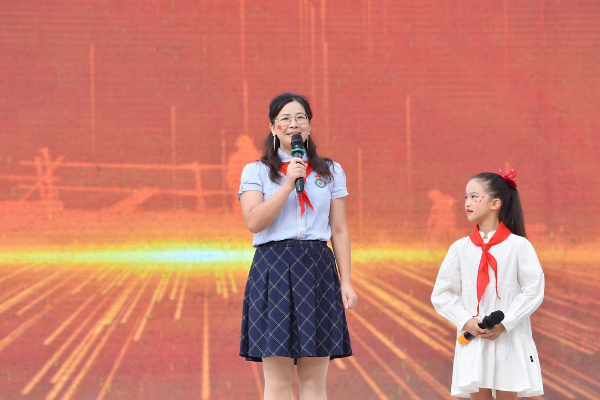 9月30日,华师中旭学校“赓续抗战精神 颂歌献给祖国”国庆合唱校级展演活动在学校党支部书记康宗芬与孩子的对话中拉开帷幕。