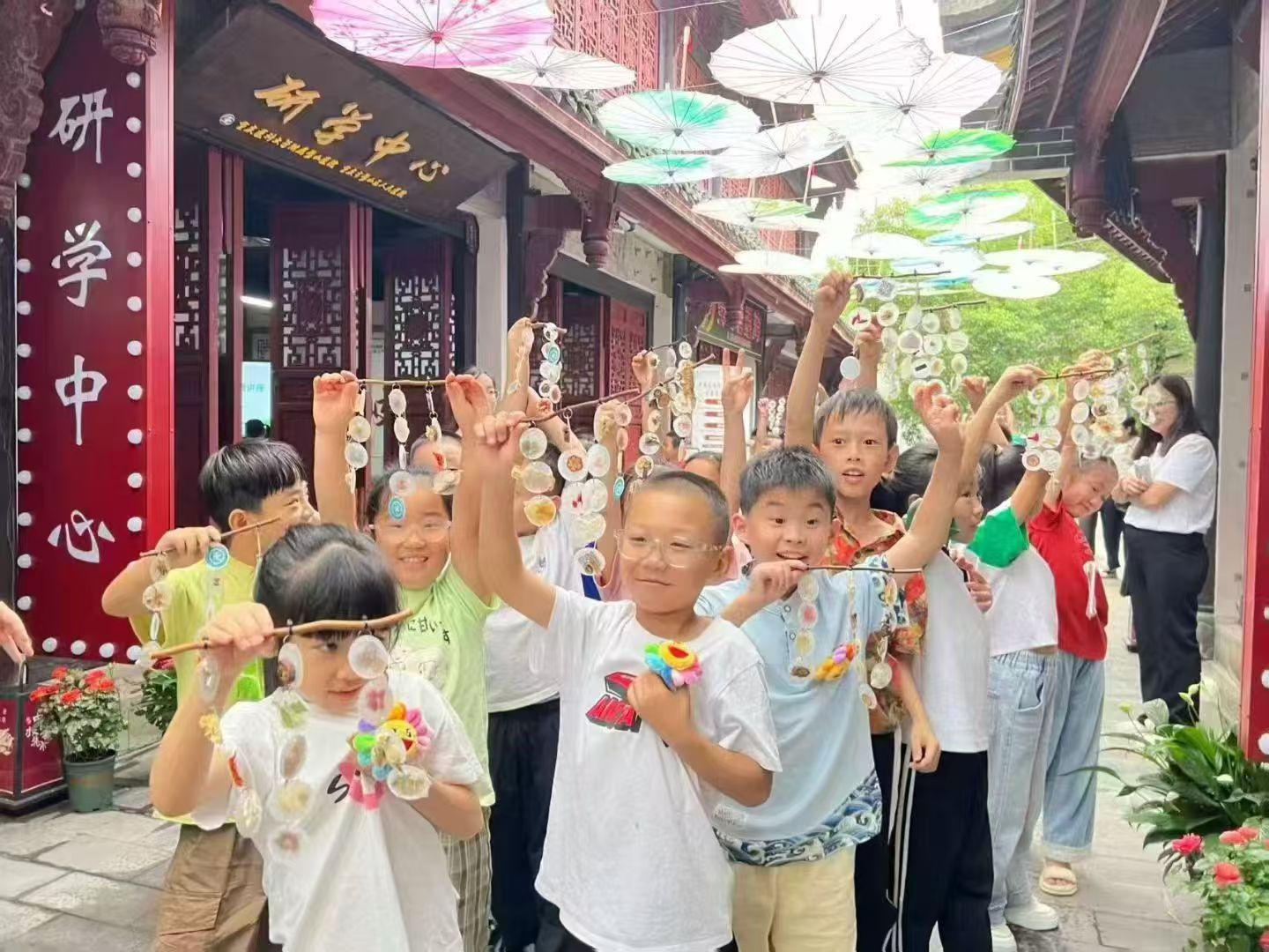 在研学体验区,孩子们在志愿者指导下,将中药材贴于贝壳上制作成中药风铃,既动手又学习,寓教于乐,加深了对中医药文化的认知。