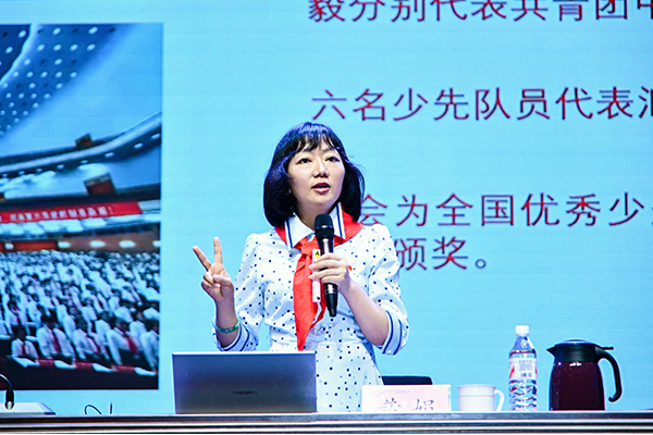重庆市团校教务处副处长黄娟对全国第九次少代会精神进行专题宣讲,从理论视角、历史视角、实践视角三大维度,深入解读少代会精神核心。活动中,还开展了微队课展示与少先队规范礼仪实操培训等环节,强化了实践育人效果。