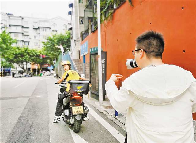 梁平核桃湾,摄像师在拍摄微电影《追风少年》中的外卖小哥片段。(梁平区融媒体中心供图)