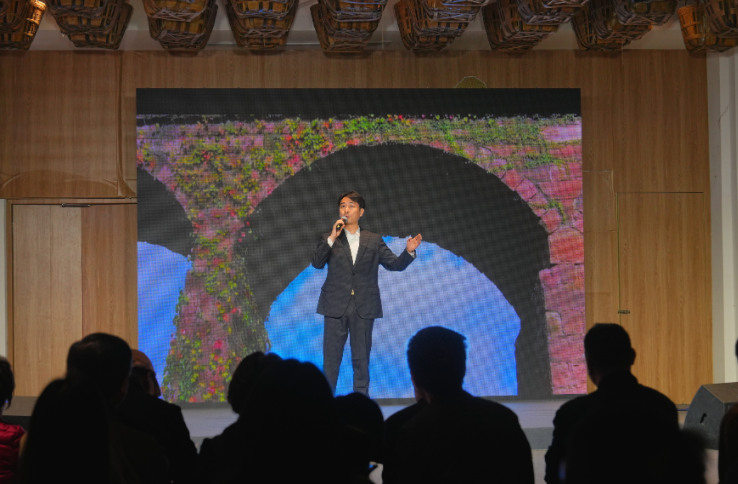 随着动线推进,“三千名流汇北碚”的历史记忆在诗语中苏醒。重庆大学美视电影学院教授黄晟朗诵的郭沫若《雷电颂》节选——“风!你咆哮吧!咆哮吧!”——以铿锵之声激荡秋空;《望北平》中老舍的家国情怀、《北碚,卢作孚纪念馆》中先辈的实干精神,引领观众与那段烽火岁月中的文人志士展开跨越时空的对话。