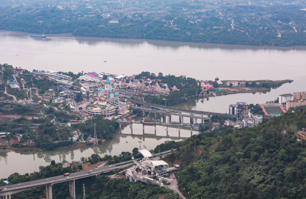 蓄水后的长江宛如一条绸带,将美心红酒小镇景区轻轻环绕。