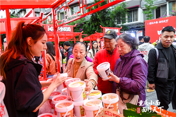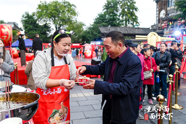 为撬动城市年轻消费市场,在四川大学锦城学院,重庆小面互动快闪站吸引大量师生驻足。师生们通过参与游戏互动、试吃体验,深入了解重庆小面文化。“辣而不燥、回味悠长,我要推荐给室友!”一名学生试吃后被重庆小面“圈粉”。