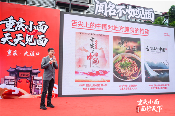 活动现场,舞蹈《闻名不如见面》以艺术形式演绎重庆小面文化,呼啦面馆、辣来主义等品牌设置独立展台,重庆小面产业代表做品牌推介和产品介绍,分享《我和重庆小面的故事》。