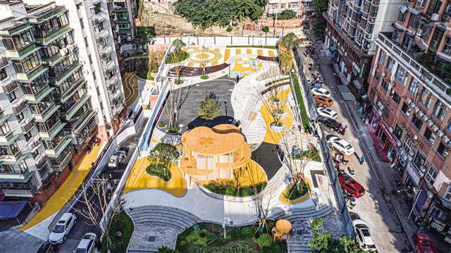 面对难题,綦江区住房城乡建委另辟蹊径,充分挖掘社区消极绿化空间,拆除危房3栋、约3700平方米,腾挪出约5500平方米的公共空间。项目团队创新山地设计手法,因势造坡,缓解区域内13米垂直落差,联通上下居住区便民生活圈。以新建社区服务用房、养老公寓、社区食堂、停车库等约2万平方米建筑体为支撑,打造集山地交通、公共配套、社区服务于一体的立体综合体,让老旧社区重新焕发生机。