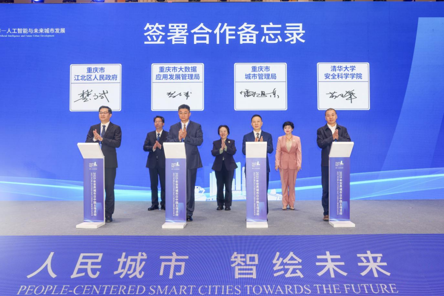 重庆市大数据应用发展管理局、重庆市城市管理局、江北区人民政府与清华大学安全科学学院共同签署合作备忘录(熊鹏摄)