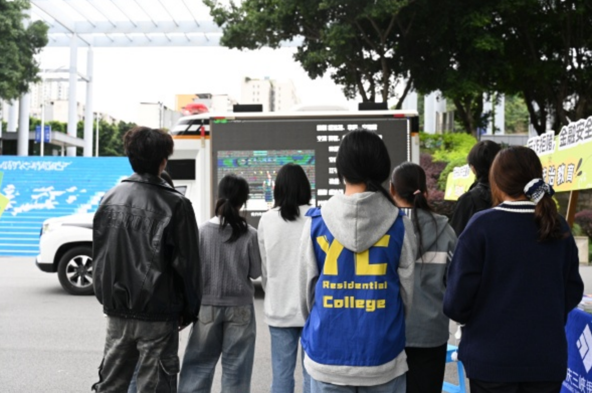 法治教育筑牢安全线,活动当天除了中信建投期货代表与学校教师围绕期货知识、防非法金融、反洗钱开展讲座之外,合川区人民法院“车载便民法庭”也开进校园,面向全校师生开放参观并播放反诈教育片,重庆三峡银行工作人员则针对反诈拒赌进行普及,提醒师生注意支付安全。