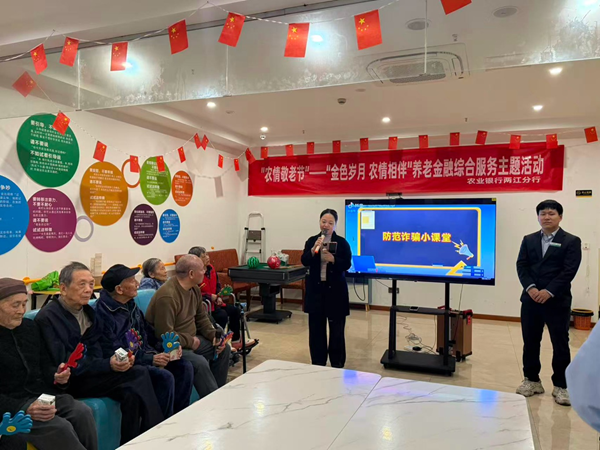 江津支行组织员工到敬老院及部分村居开展“情暖重阳 关爱老人”慰问活动,与长者交流,详细了解其生活与健康状况,为他们送去粮油、牛奶等慰问品;九龙坡支行联动社区走进养老院,开展“金色岁月 农情相伴”养老金融综合服务活动,工作人员聚焦养老金融诈骗高频场景,讲解防诈骗知识的同时,开展趣味活动、义剪、手工制作等互动。
