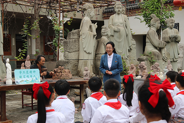 大足区宝顶镇实验小学学生沉浸式学习大足石刻文化。