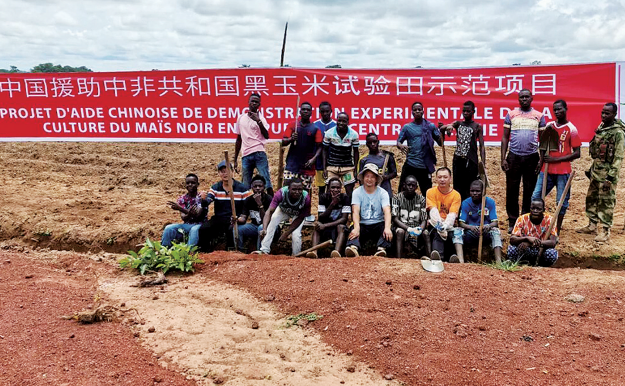 双方人员在援中非共和国黑玉米试验田示范项目合影 市农业科学院供图