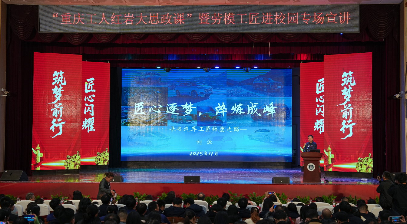 前不久,第三届大国工匠创新交流大会暨劳模工匠论坛在重庆闭幕。为持续营造尊崇劳模精神、劳动精神、工匠精神的浓厚氛围,推进“重庆工人红岩大思政课”体系建设,11月12日,“匠心闪耀 筑梦前行”2025年重庆市能源工会“重庆工人红岩大思政课”暨劳模工匠进校园专场宣讲活动在重庆电力高等专科学校举办。