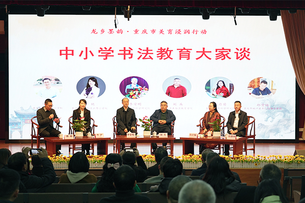 中小学书法教育如何在困境中破局?又怎样在新时代背景下实现融合与创新?开幕式后,“中小学书法教育大家谈”专题研讨会也在巴川小学举行,与会嘉宾共同探讨中小学书法教育的路径与未来,推动书法教育从“写字”走向“育人”,从“技能”走向“素养”。