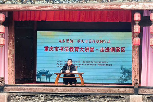“重庆市书法教育大讲堂·走进铜梁区”活动在古城湖广会馆中举行,参会者在古韵场景中感悟书法作为“活的文化”的精神内涵。