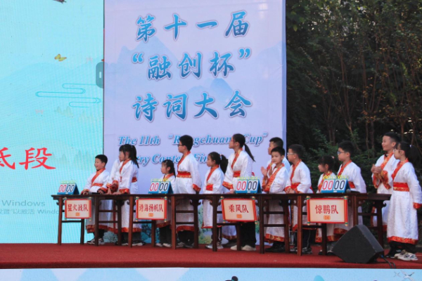 近日,天台岗融创小学第十一届“融创杯”诗词大会启幕。南岸区教师进修学院教学研修部副主任胡平,中国当代著名诗人、词作家、重庆市公安作协主席李尚朝,中国作家协会会员、重庆市诗词学会格律体新诗专委会主任万龙生,重庆市南岸作家协会诗词创委会主任、南山诗社社长半川,以及来自天台岗小学教育集团9校点,泸州、彭水苗族土家族自治县友好学校师生代表、家长代表等齐聚一堂,学子们以诗为媒、以赛会友,共同演绎中华经典的千年韵味与时代风采。