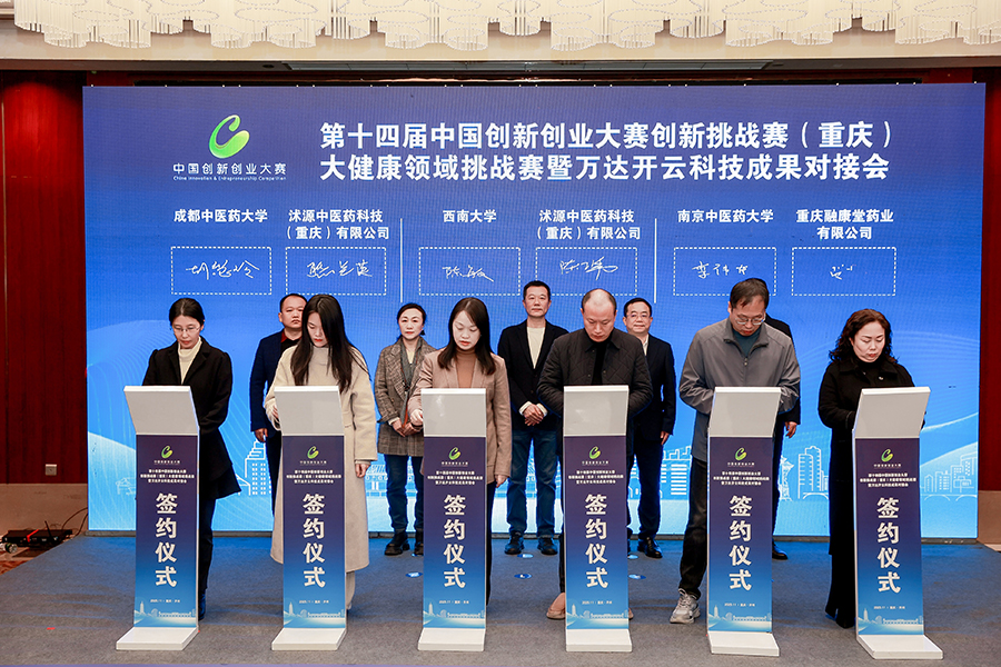 为推动研发与产业紧密结合,活动现场组织了产学研合作项目签约。重庆市中药研究院与重庆市长江职业培训学校、南京中医药大学与重庆市宝华制药有限公司、重庆大学与重庆海通环保科技有限公司等10组单位达成合作。