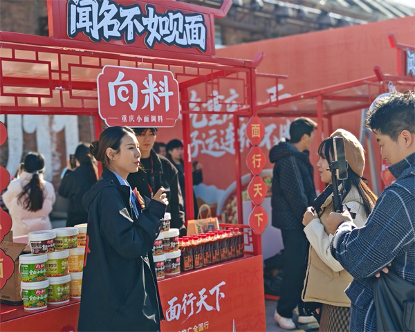 活动现场,向料的展位前人头攒动,浓郁的红油香气与花椒的麻香交织,吸引不少食客驻足品尝。作为专注重庆小面调料研发与生产的重庆本土企业,此次郑州站向料不仅带来了油辣子、耙豌豆、杂酱等经典重庆小面调料,还展出了重庆粉面速食等,满足不同消费者的需求。“目前我们的产品覆盖商超、电商、餐饮B端等多个渠道,希望通过此次活动让更多外地消费者爱上重庆小面,在家也能轻松煮出一碗正宗的重庆小面。”向料展位相关负责人说。
