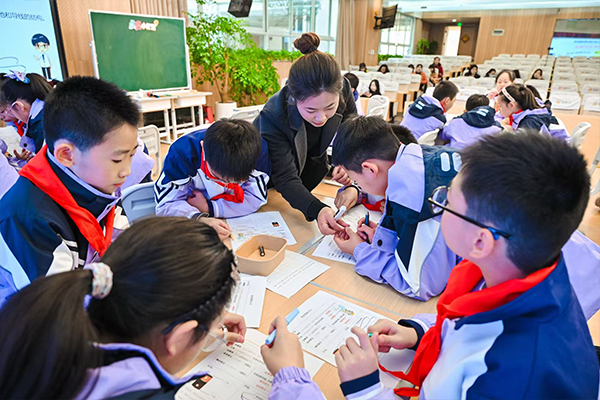 孩子们参与课堂互动,协作探索。