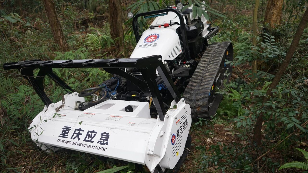 面对火势蔓延,毗邻永川区应急救援支队应邀驰援紧急开辟隔离带,远程操控“隔离带砍伐机器人”进入火场作业。该机器人可适应复杂林地环境,快速高效清理植被,配合荣昌区调集的挖掘机等工程机械,共同构建防火屏障,展现了区域应急联动与科技清障的实战效能。