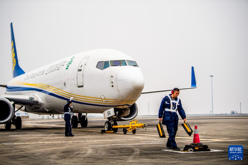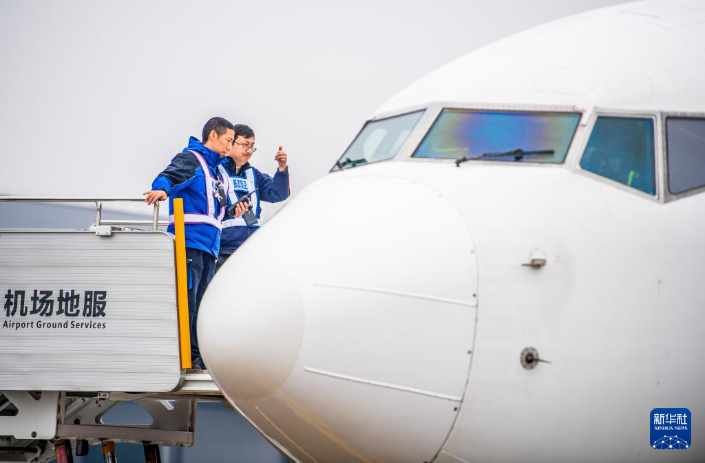 12月9日,工作人员进行中国邮政“重庆至仰光”国际货邮航线首航货机起飞前的准备工作。新华社记者 唐奕 摄