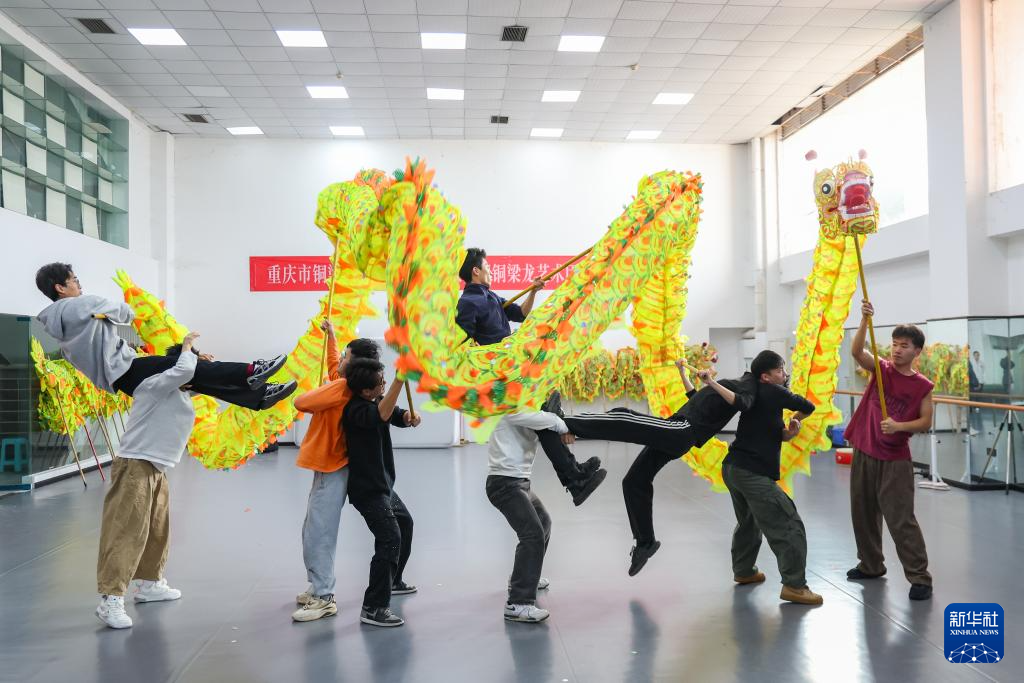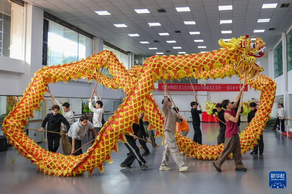12月7日,重庆铜梁龙艺术团竞技舞龙队队员在进行日常训练。新华社记者 黄伟 摄