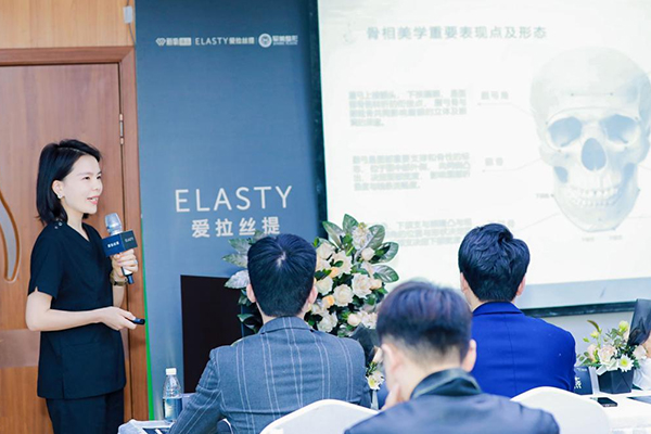 专家分享环节中,重庆军美医疗美容医院微整科院长朱晓燕围绕爱拉丝提新品发表了专题分享,解析了其在塑造面部内外轮廓中的美学价值与临床应用。她表示,材料的支撑力与延展性决定了轮廓定型的持久度,而精准的分层注射技术则是实现自然效果的关键。