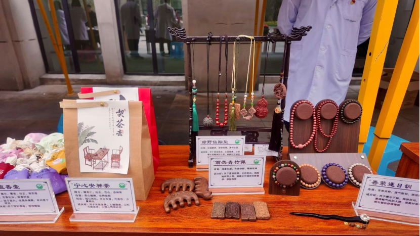 在一旁的中医药文化展示区,陈列着各类药材、器具,呈现中医药的发展脉络与本地特色。展区中,一款“中药养生梳”吸引了不少居民驻足。垫江县中医院药学部主管药师徐星科介绍,“这是新近研发的文创产品,将草本配方融入梳体材质中,通过日常梳头实现药材缓释渗透,有助于安神助眠。”